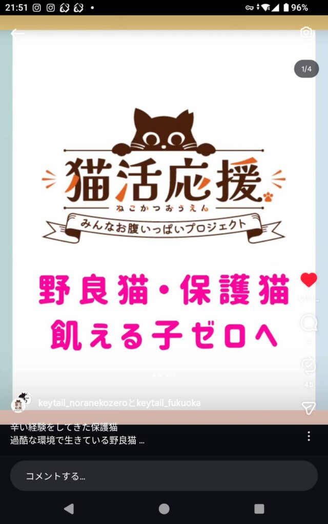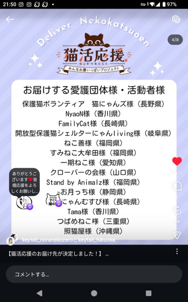 株式会社キーテイル様の猫活応援「みんなお腹いっぱいプロジェクト」のご支援をいただけることになりました。