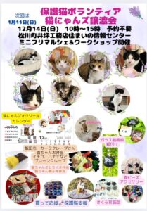 里親さん募集チラシ更新しました(12/28)。譲渡会などはイベントコーナーをご覧ください。