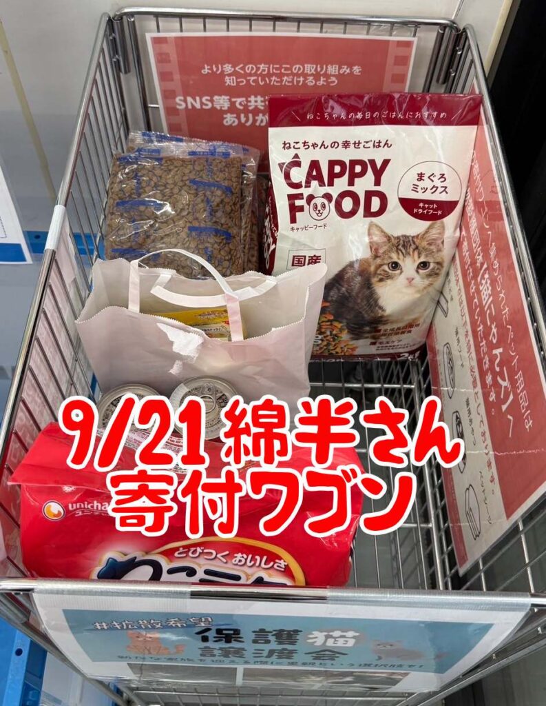 ・譲渡会でいつものN様、I様から寄付を頂きました。大切に使わせていただきます。(10/5)
